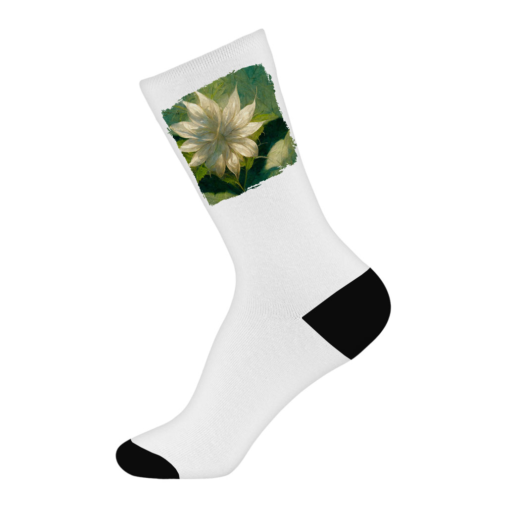 Artificial Dahlia Flower Socks – Flower Novelty Socks – Printed Crew Socks