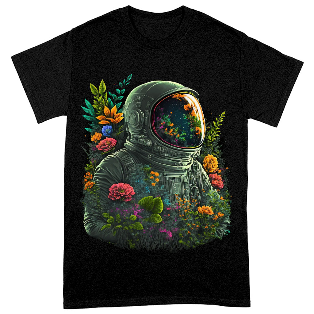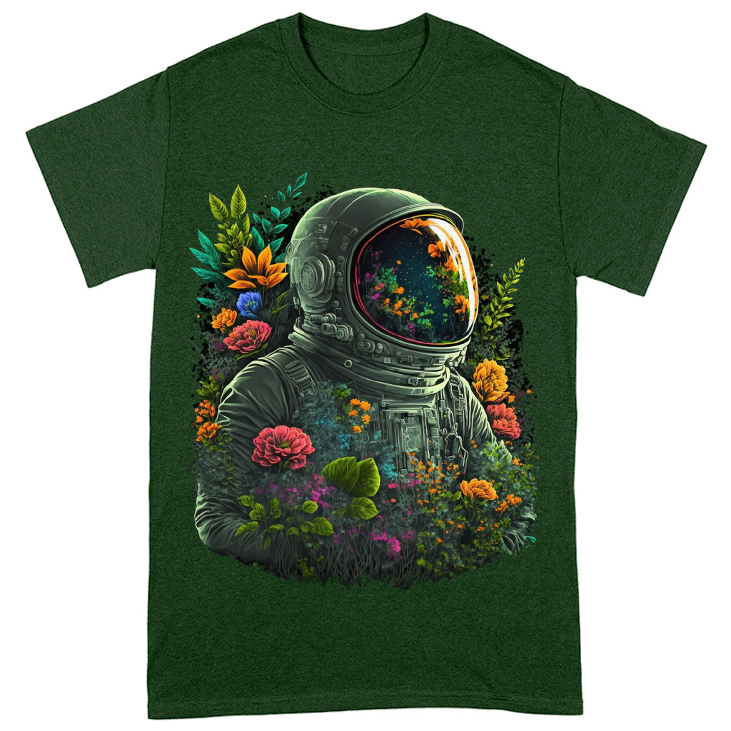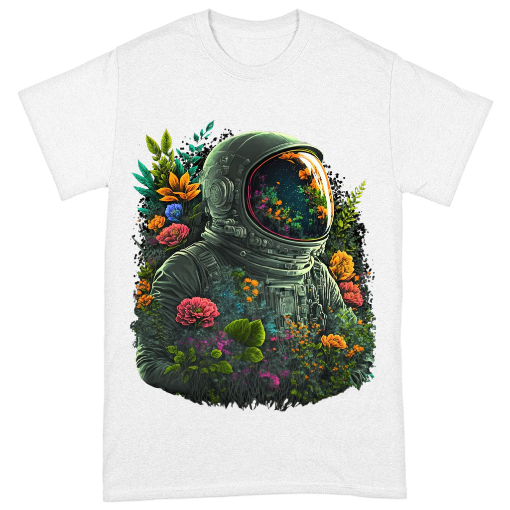 Astronaut Design Heavy Cotton T-Shirt – Flower Tee Shirt – Cute Design T-Shirt