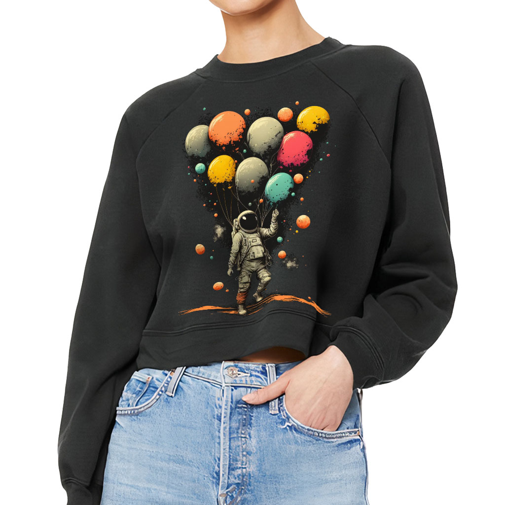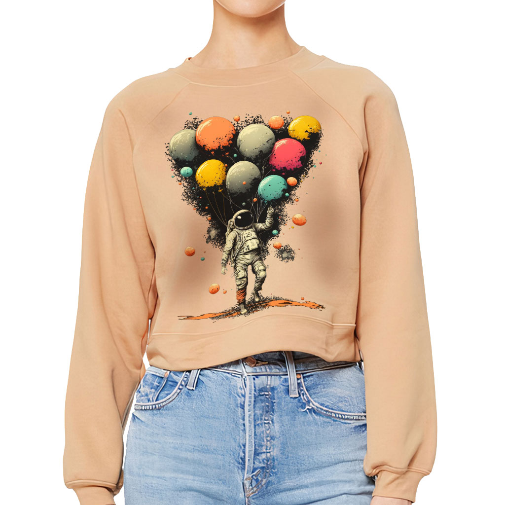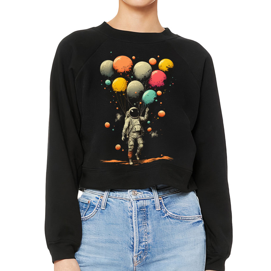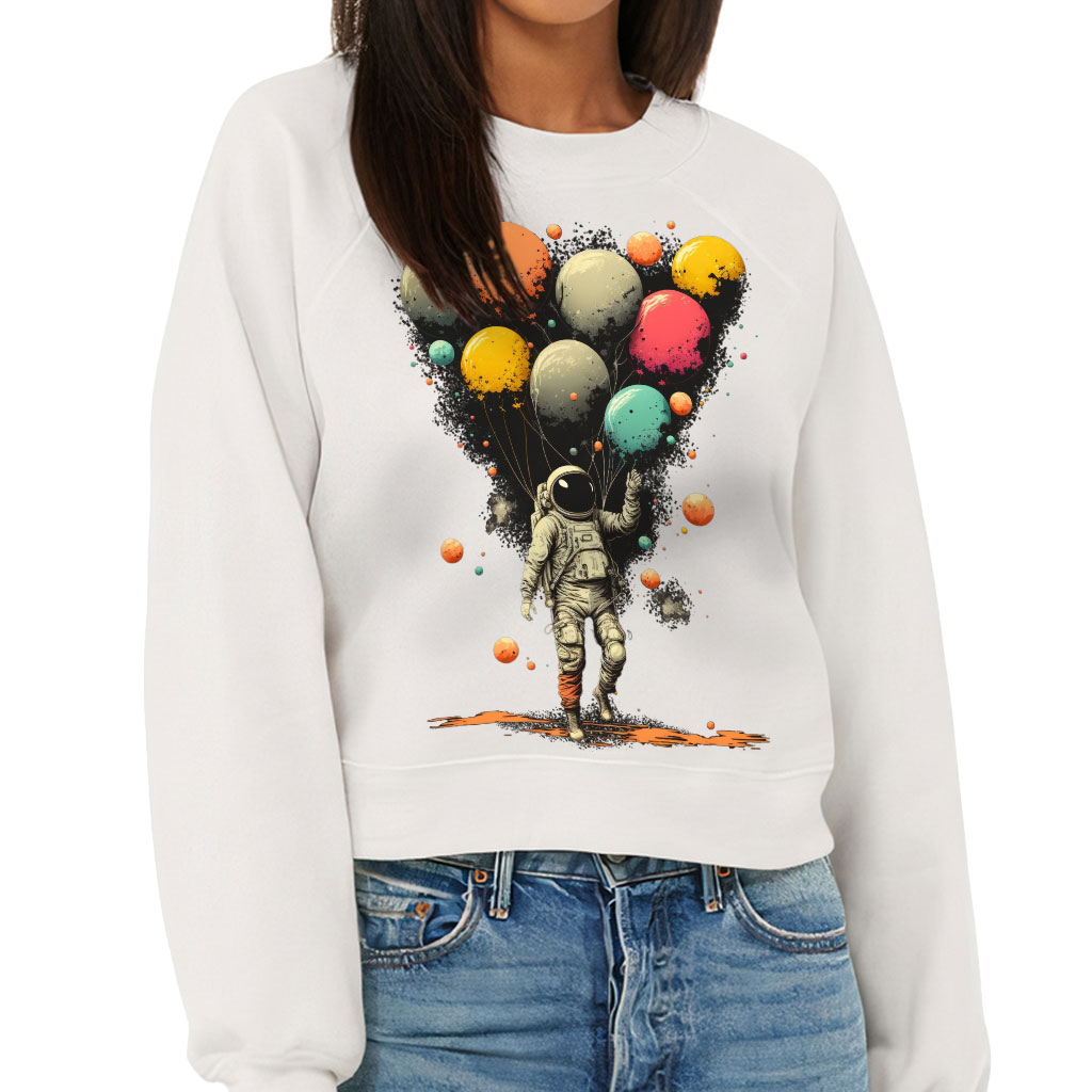Astronaut With Balloons Raglan Pullover – Cool Design Women’s Sweatshirt – Themed Pullover