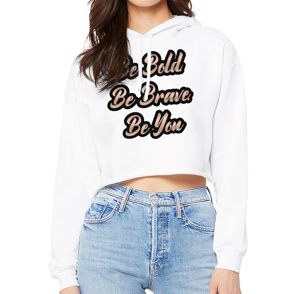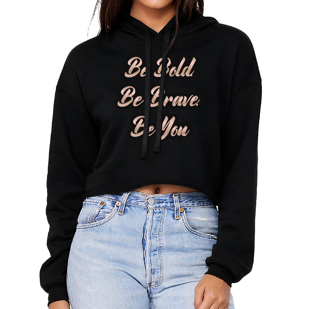 Be Bold Be Brave Women’s Cropped Hoodie – Inspirational Cropped Hoodie – Printed Hooded Sweatshirt
