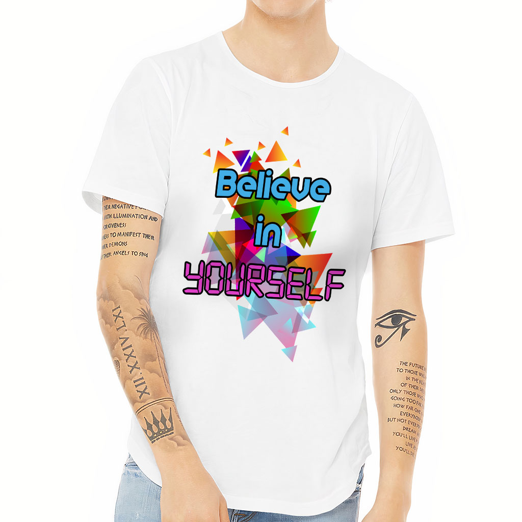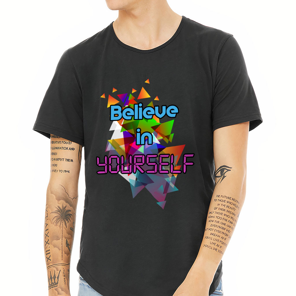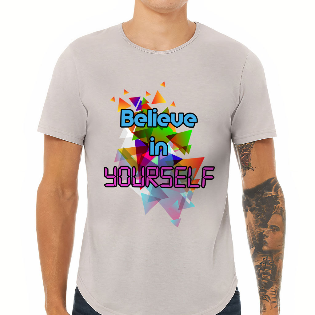 Believe in Yourself Curved Hem T-Shirt – Motivational T-Shirt – Illustration Curved Hem Tee