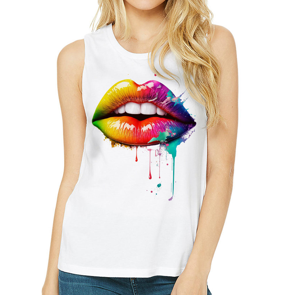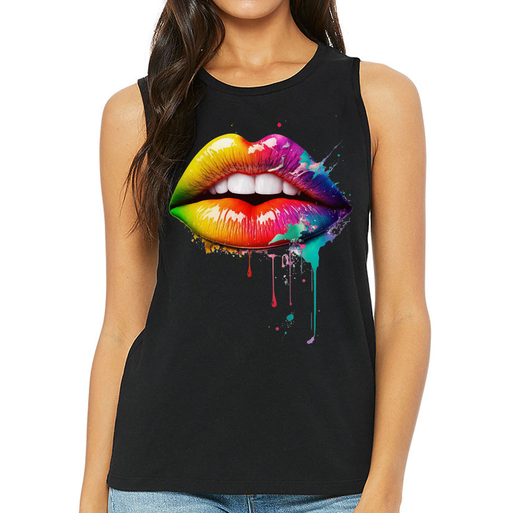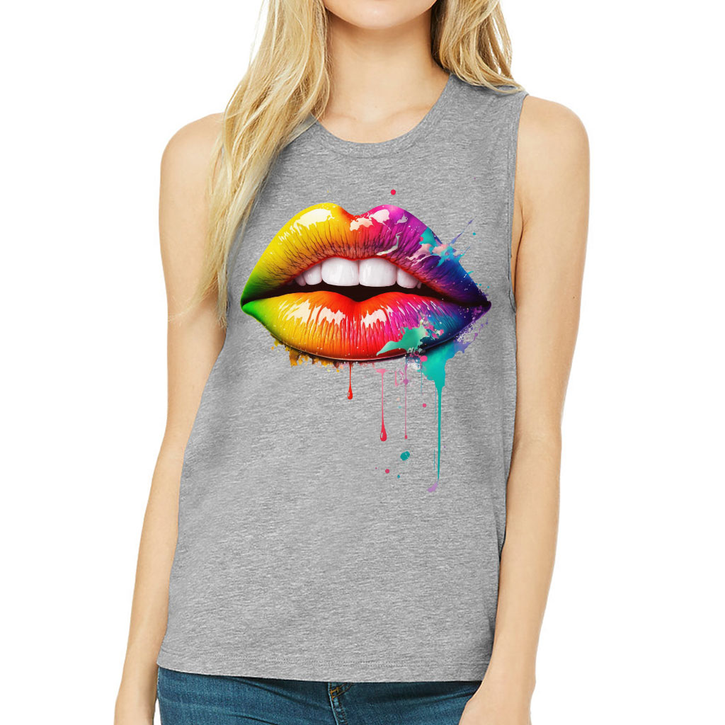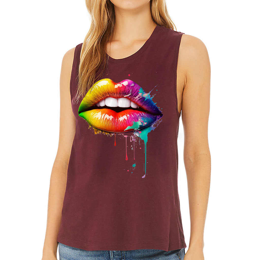 Colorful Lips Women’s Muscle Tank – Cool Tank Top – Trendy Workout Tank