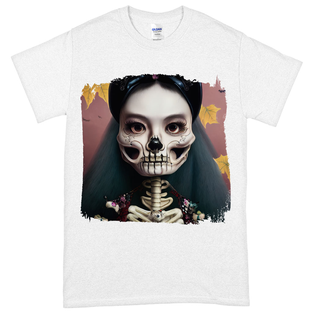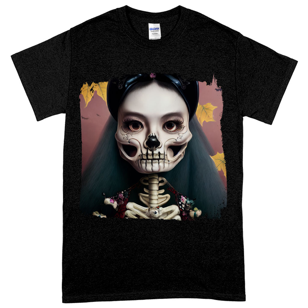 Unisex Cool Skeleton Heavy Cotton T-Shirt – Floral Tee Shirt – Halloween Print T-Shirt