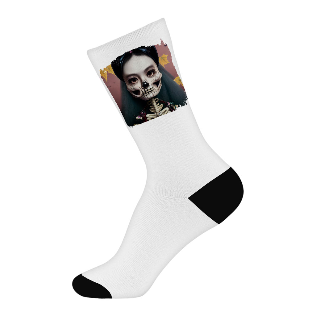 Cool Skeleton Socks – Floral Novelty Socks – Halloween Print Crew Socks