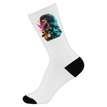 Fiber with strong elasticity, breathable and comfortable, these socks are ideal for indoor and outdoor activity. Polyester and cotton. Floral Socks is designed and printed in California.