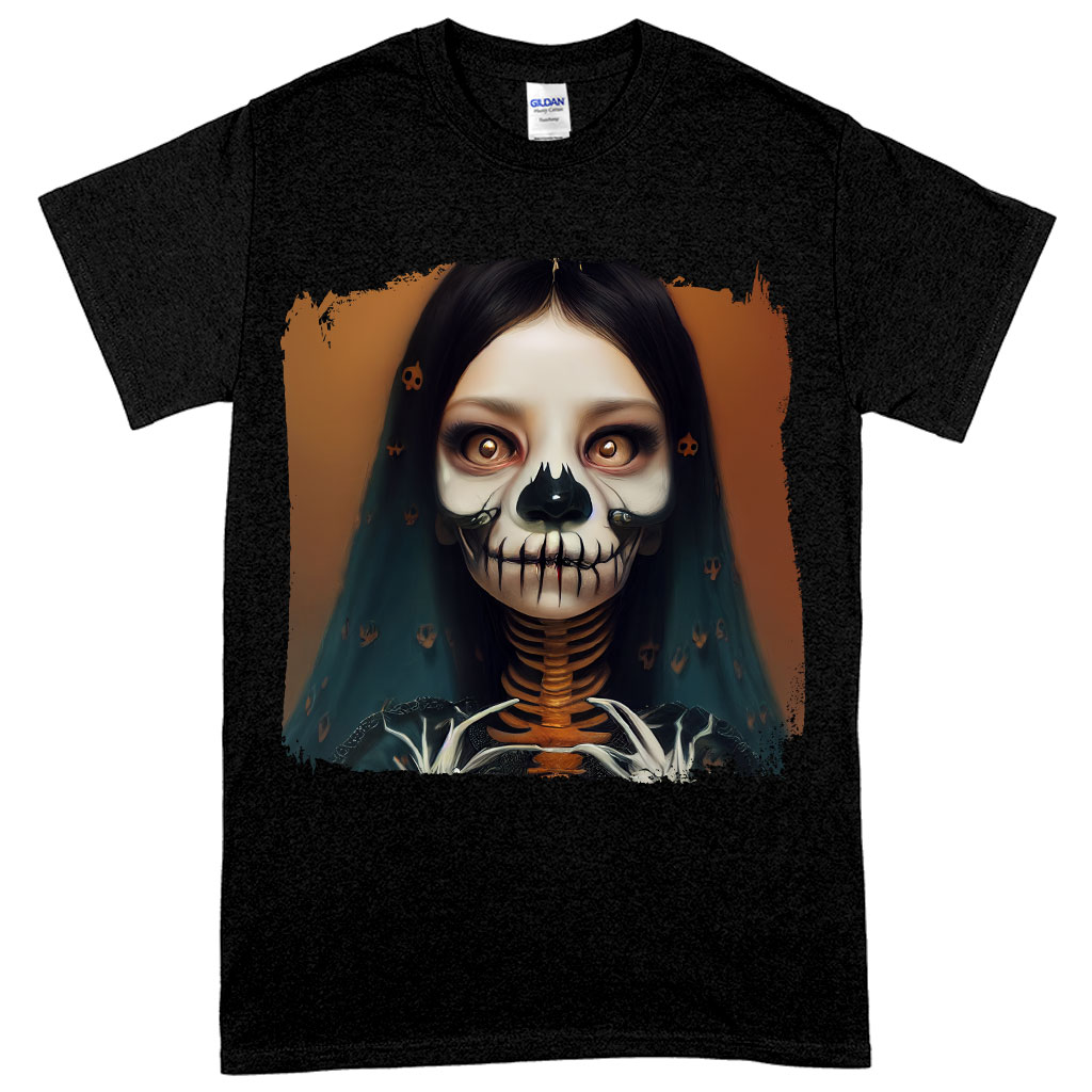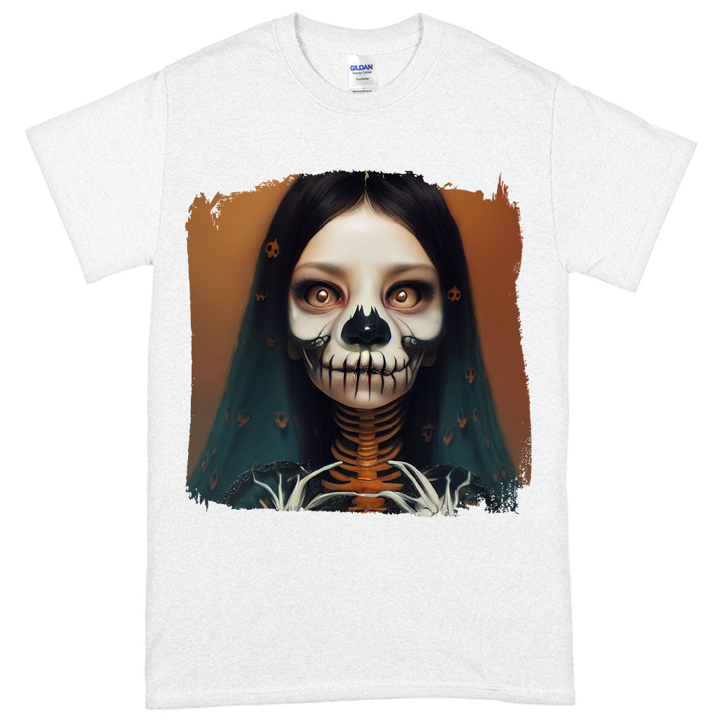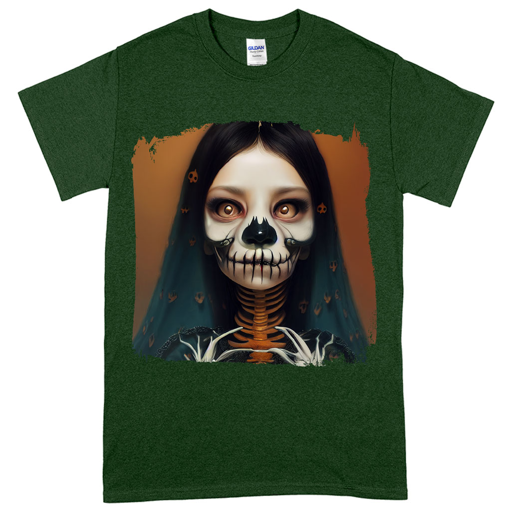 Unisex Creepy Girl Heavy Cotton T-Shirt – Gothic Print Tee Shirt – Skeleton T-Shirt