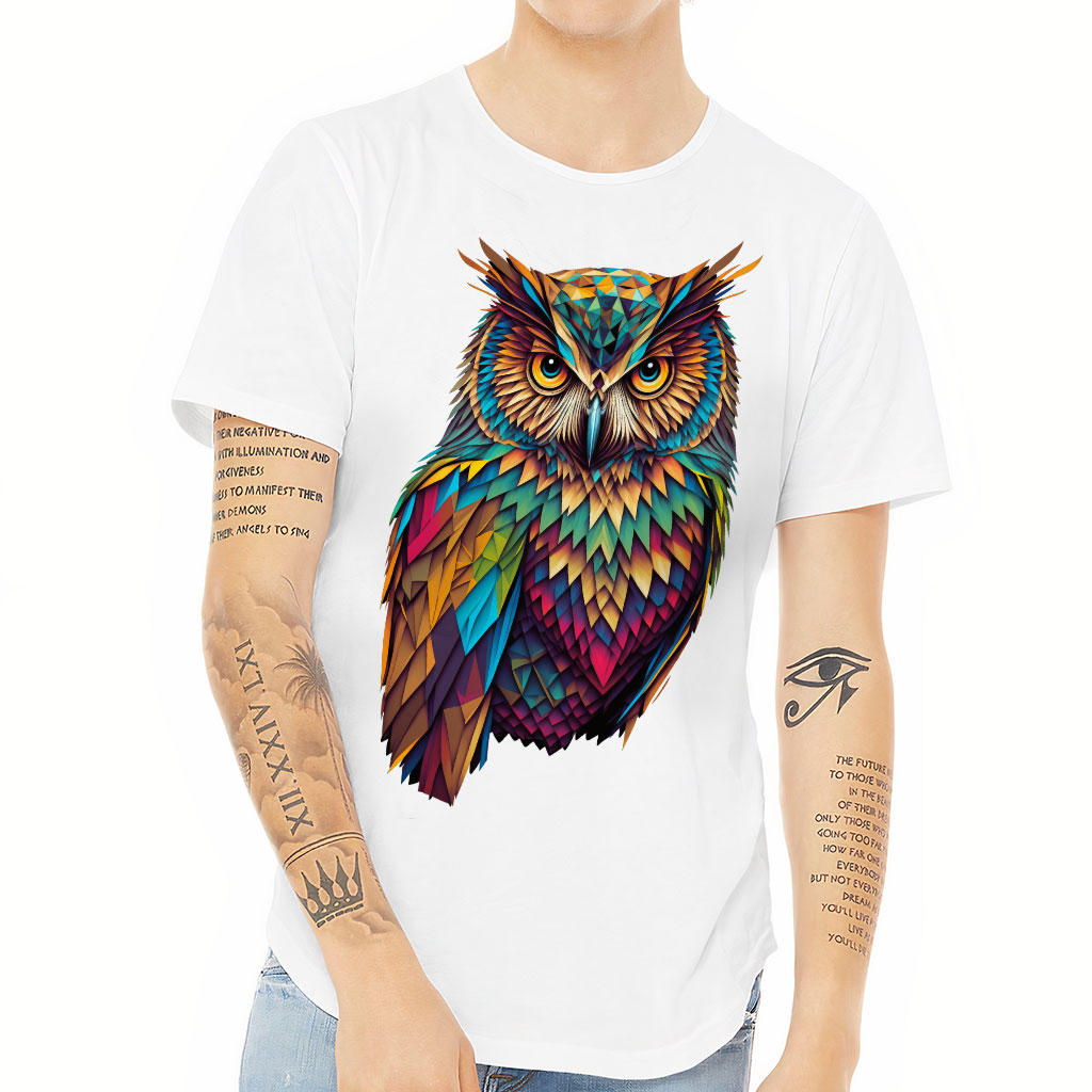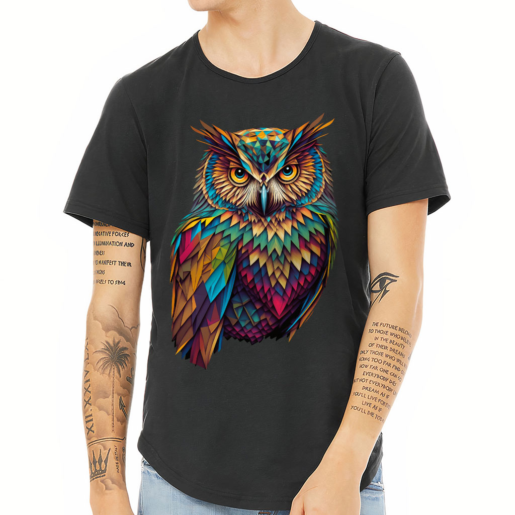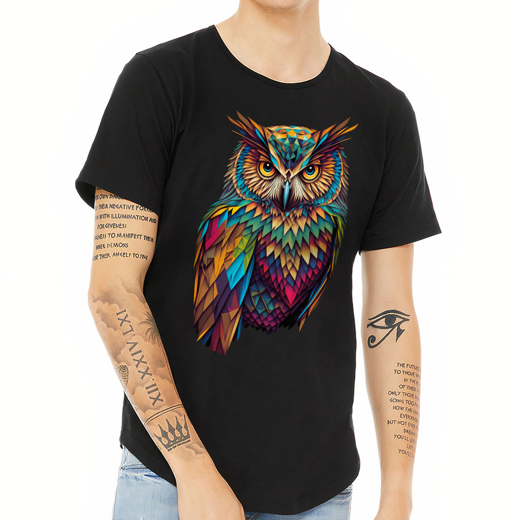 Cute Owl Curved Hem T-Shirt – Colorful T-Shirt – Cool Art Curved Hem Tee