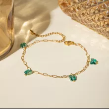 Elevate your accessory game with this stunning Green Zircon Finger Bracelet, crafted for the modern woman who loves to shine with individuality. Designed with a vibrant green zircon centerpiece, this bracelet-finger ring combo adds a fresh, eye-catching twist to any outfit. The warm glow of 18K PVD gold plating over durable stainless steel gives it a luxurious finish that resists fading and tarnishing, making it a lasting treasure in your jewelry collection.