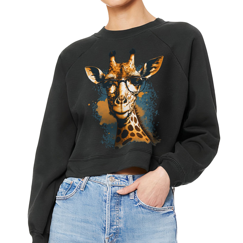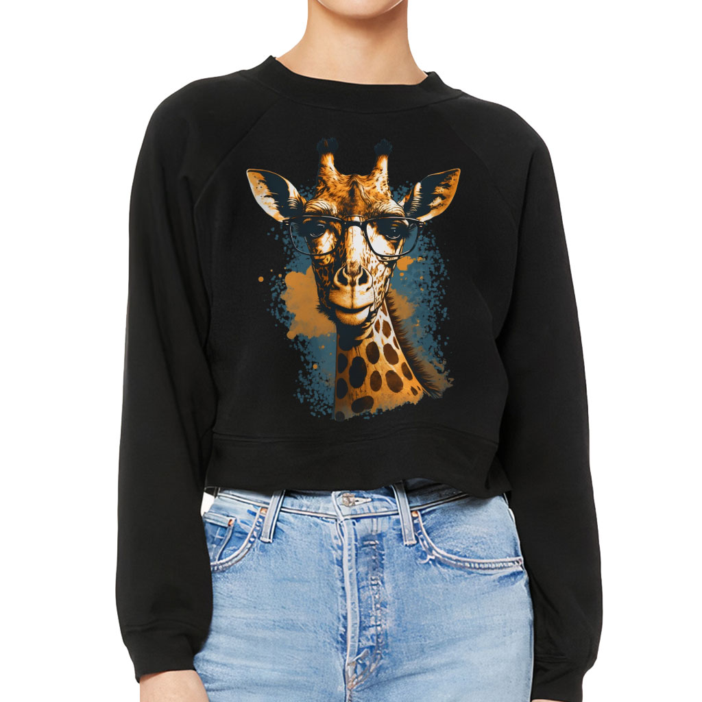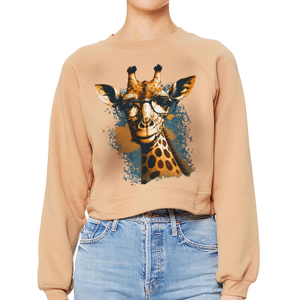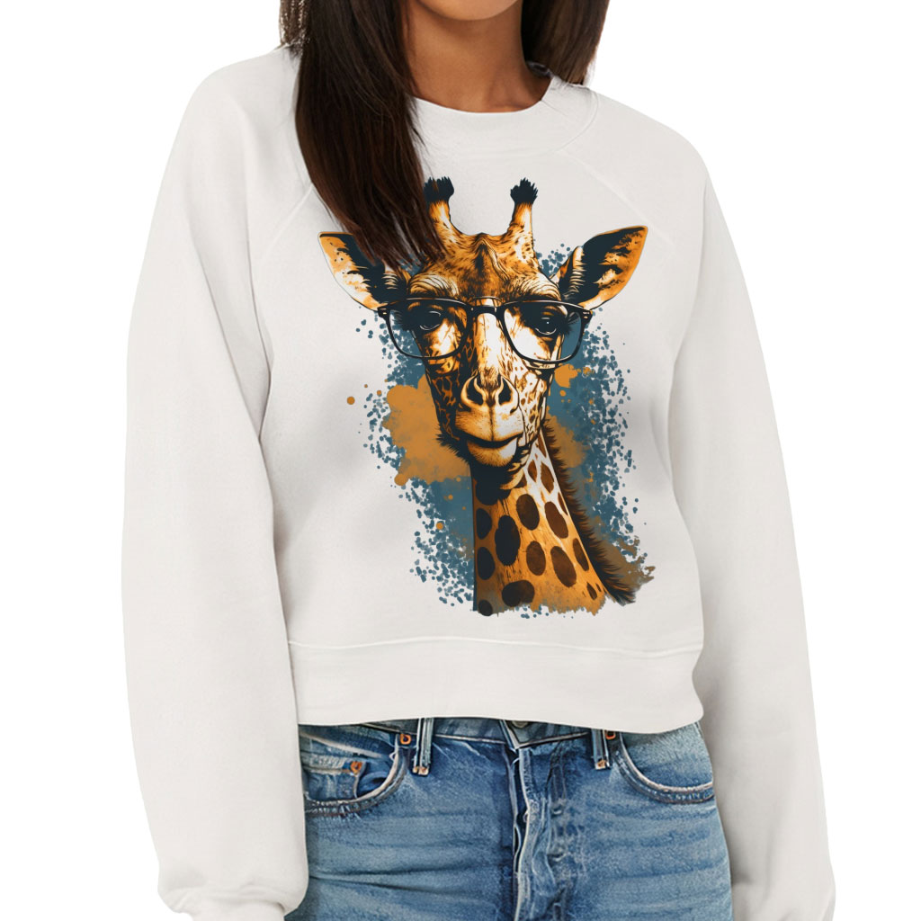 Giraffe With Glasses Raglan Pullover – Funny Women’s Sweatshirt – Animal Pullover