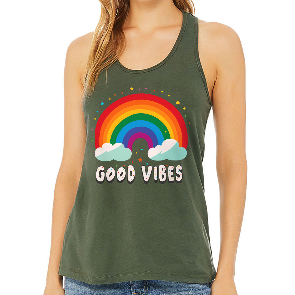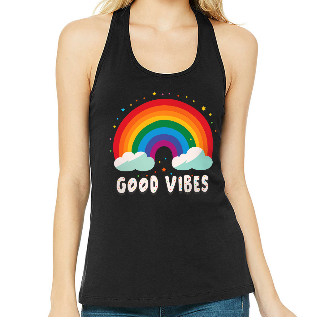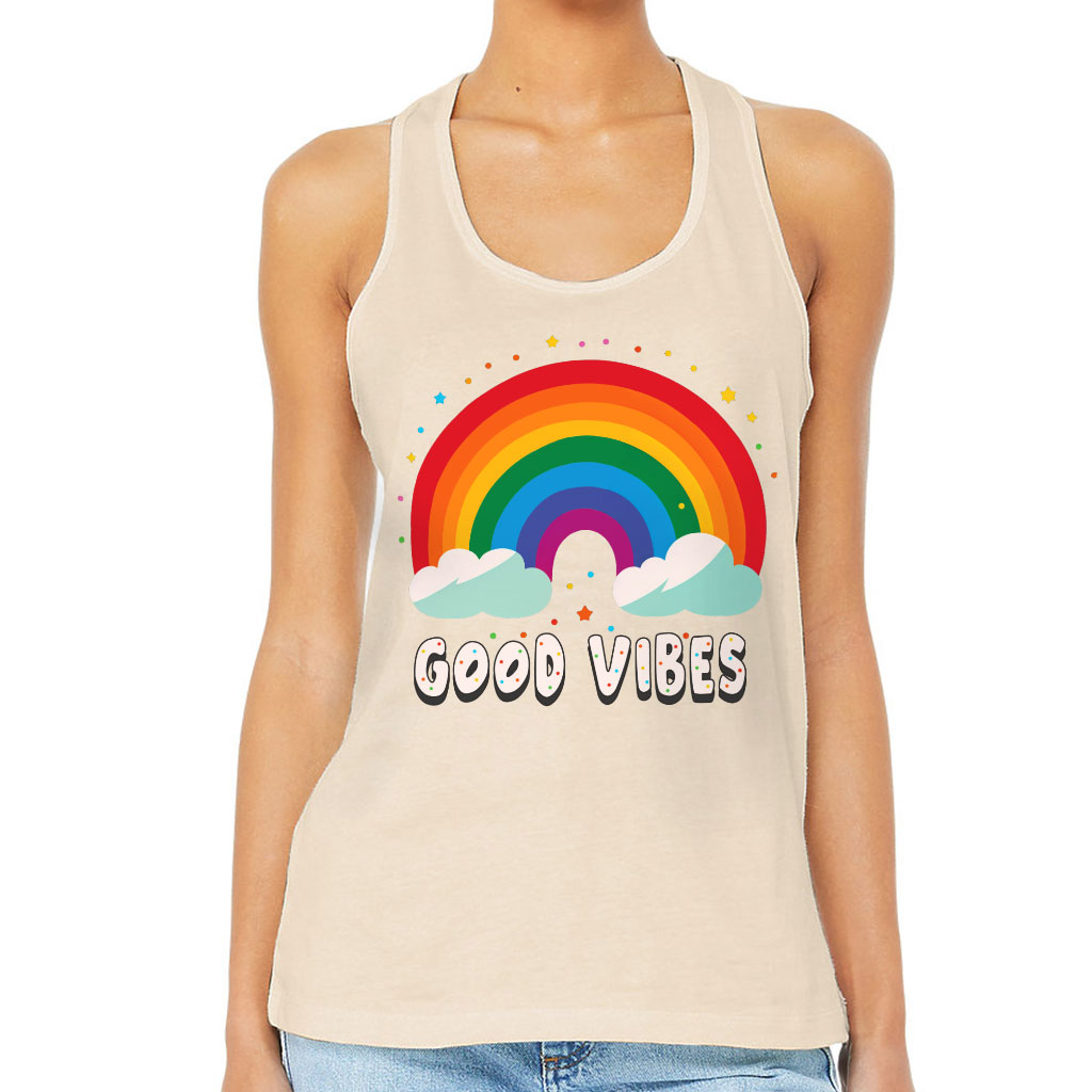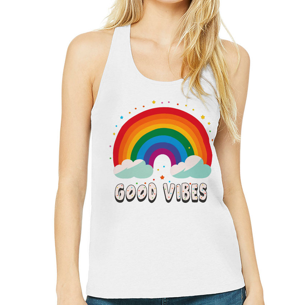 Good Vibes Women’s Racerback Tank – Rainbow Tank Top – Colorful Workout Tank