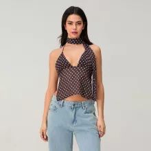 Crafted from soft, lightweight polyester, this top is breathable and comfortable, making it ideal for warm weather. The halter neck design elongates your neckline while providing a secure, flattering fit. A touch of stretch ensures ease of movement and a slim-fit cut enhances your natural shape. The solid color base makes it easy to pair with jeans, skirts, or high-waisted shorts for endless outfit options.