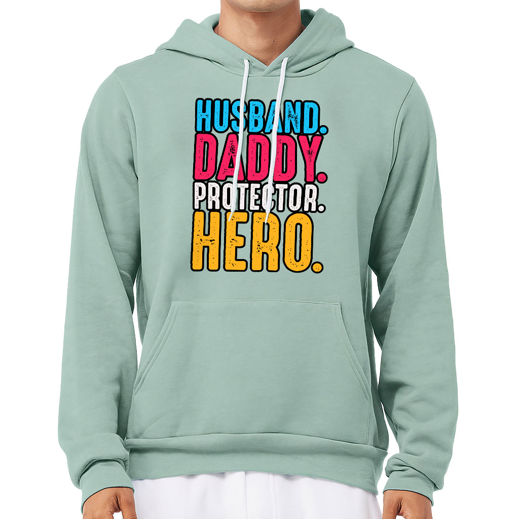Husband Daddy Protector Hero Sponge Fleece Hoodie – Cool Hoodie – Printed Hooded Sweatshirt