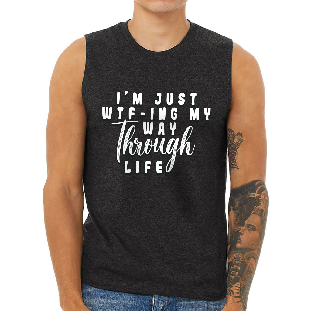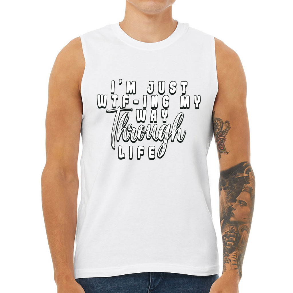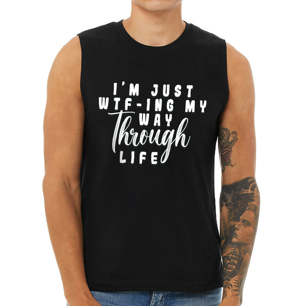 I’m Just Wtfing Through Life Men’s Muscle Tank – Funny Men’s Sleeveless T-Shirt – Themed Tank