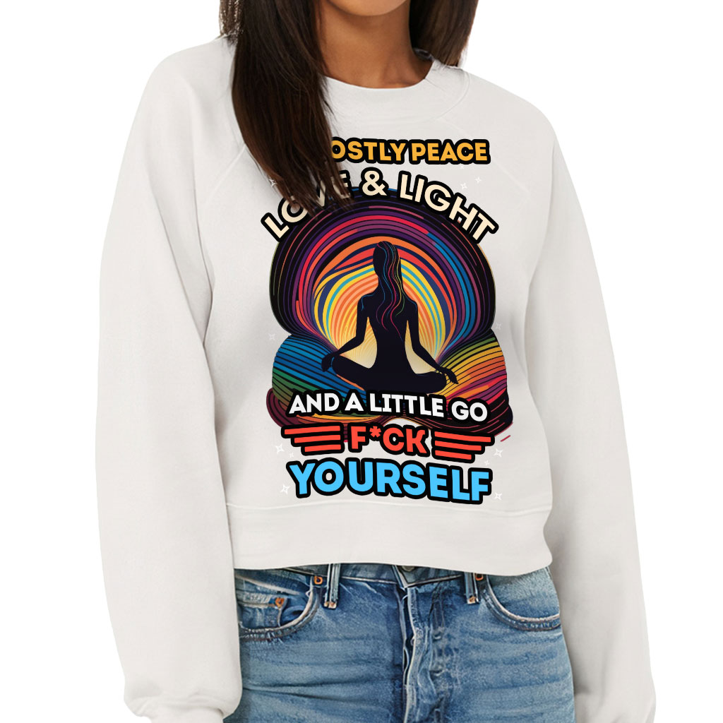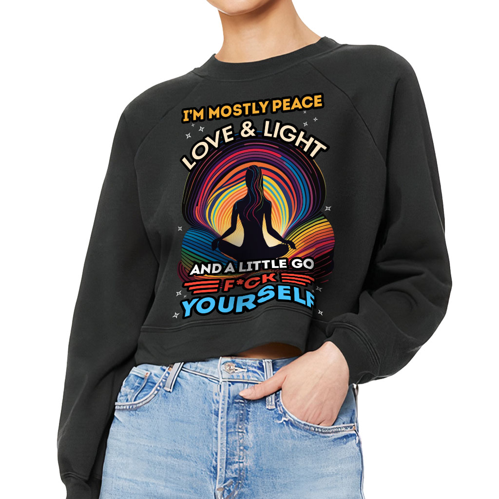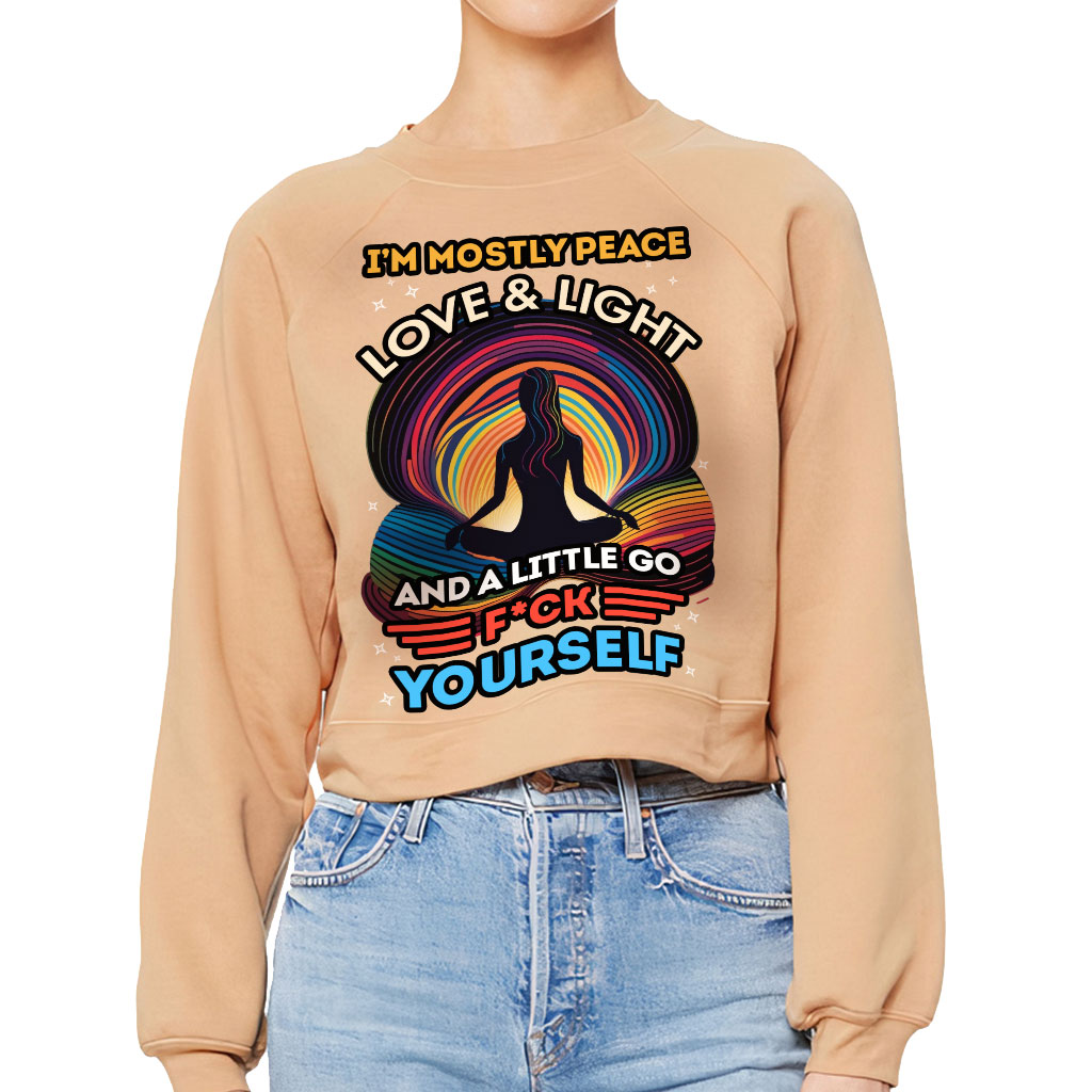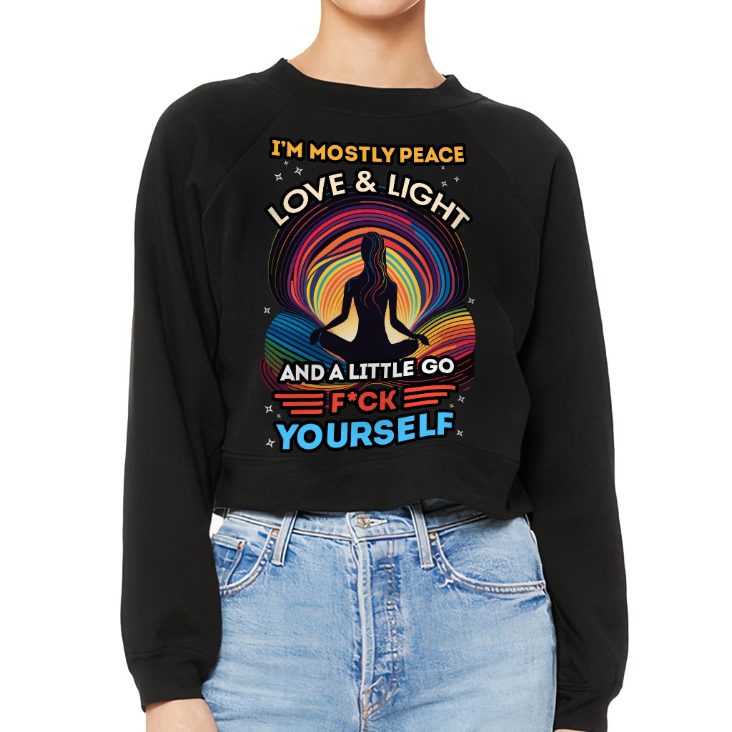 I’m Mostly Peace Love and Light Raglan Pullover – Yoga Themed Women’s Sweatshirt – Funny Pullover