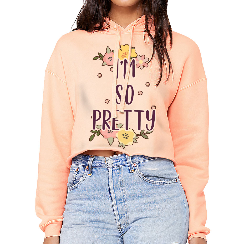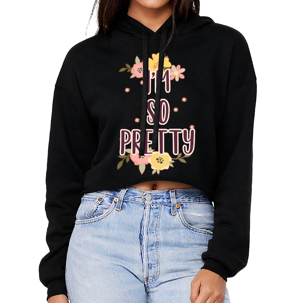 I’m So Pretty Women’s Cropped Hoodie – Floral Cropped Hoodie – Kawaii Hooded Sweatshirt