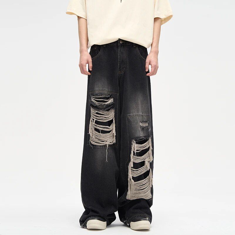Step into a world where comfort meets style with our Men’s Distressed Wide Leg Black Jeans. Merging the rebellious spirit of Y2K fashion with the effortless cool of Korean streetwear, these jeans are your ticket to a wardrobe that’s as daring as it is laid-back. Crafted for the modern man who doesn’t shy away from making a statement, these pants promise to keep you at the forefront of contemporary style all year round.