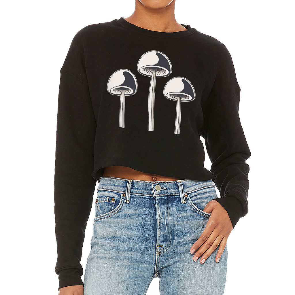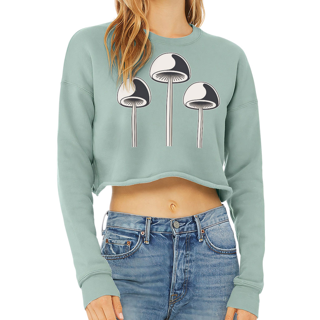Mushroom Design Cropped Sweatshirt – Graphic Women’s Sweatshirt – Themed Crop Crew Sweatshirt