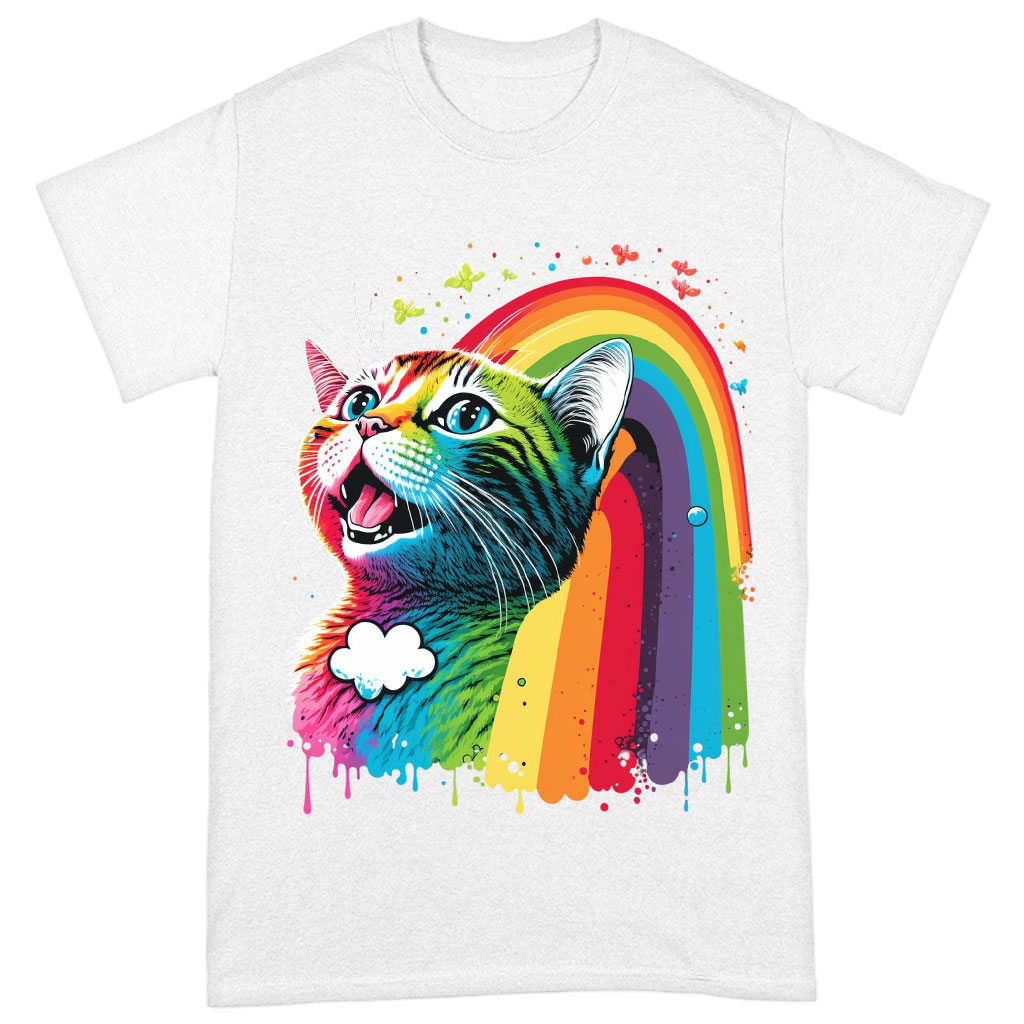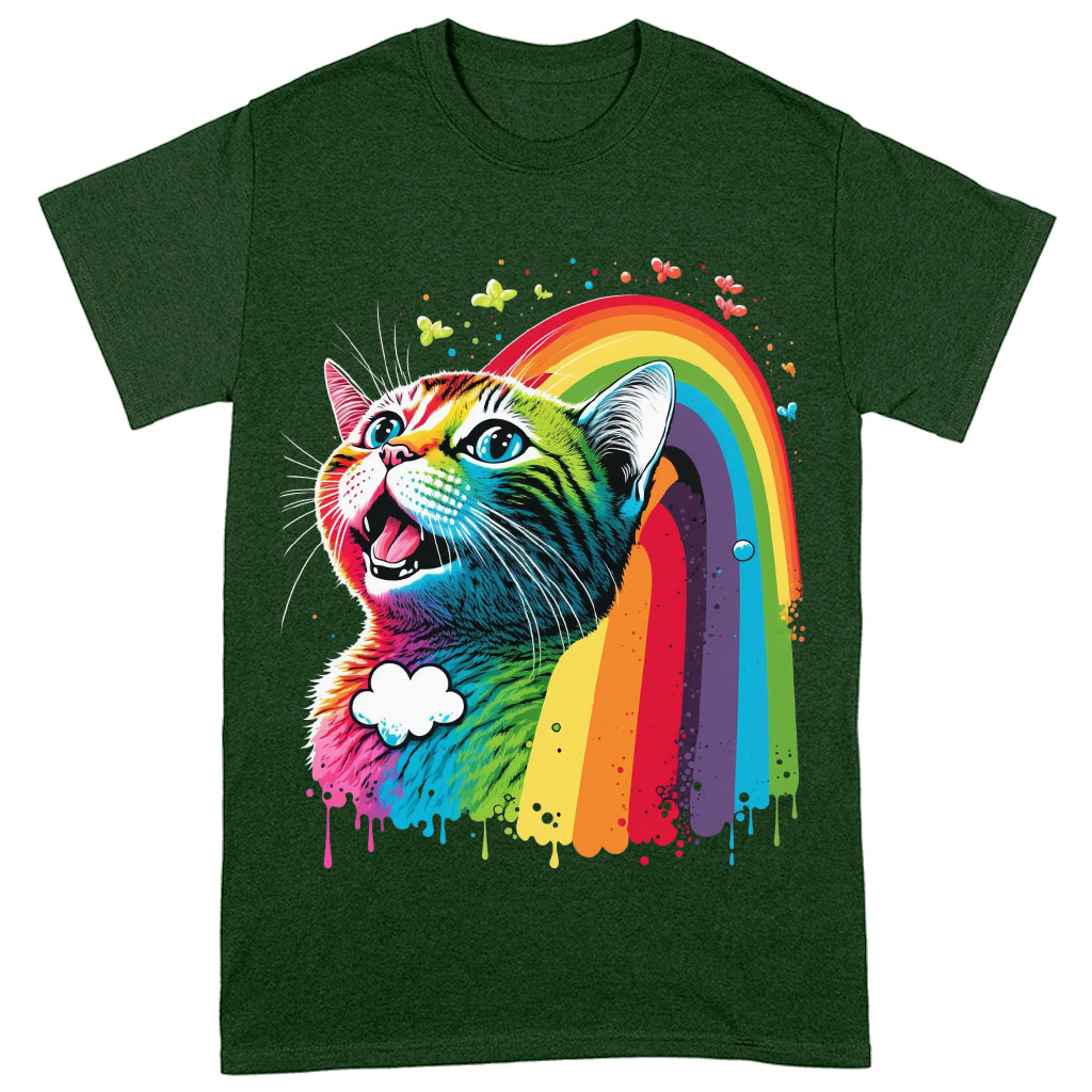 Rainbow Cat Heavy Cotton T-Shirt – Colorful Tee Shirt – Cute Design T-Shirt