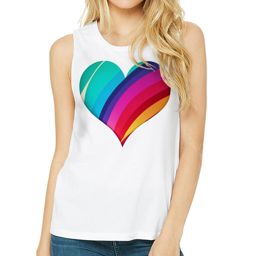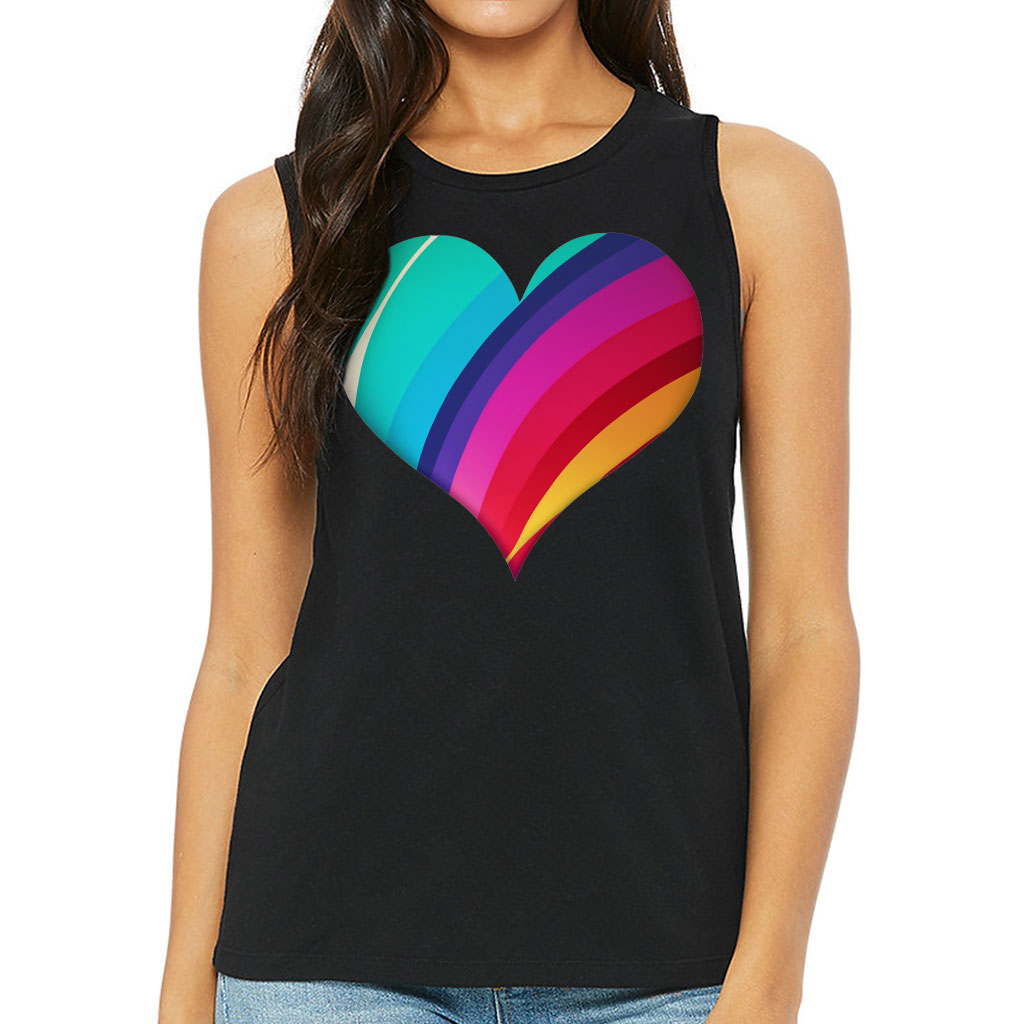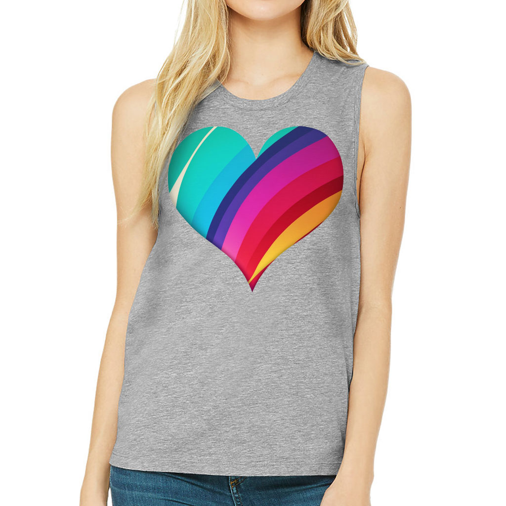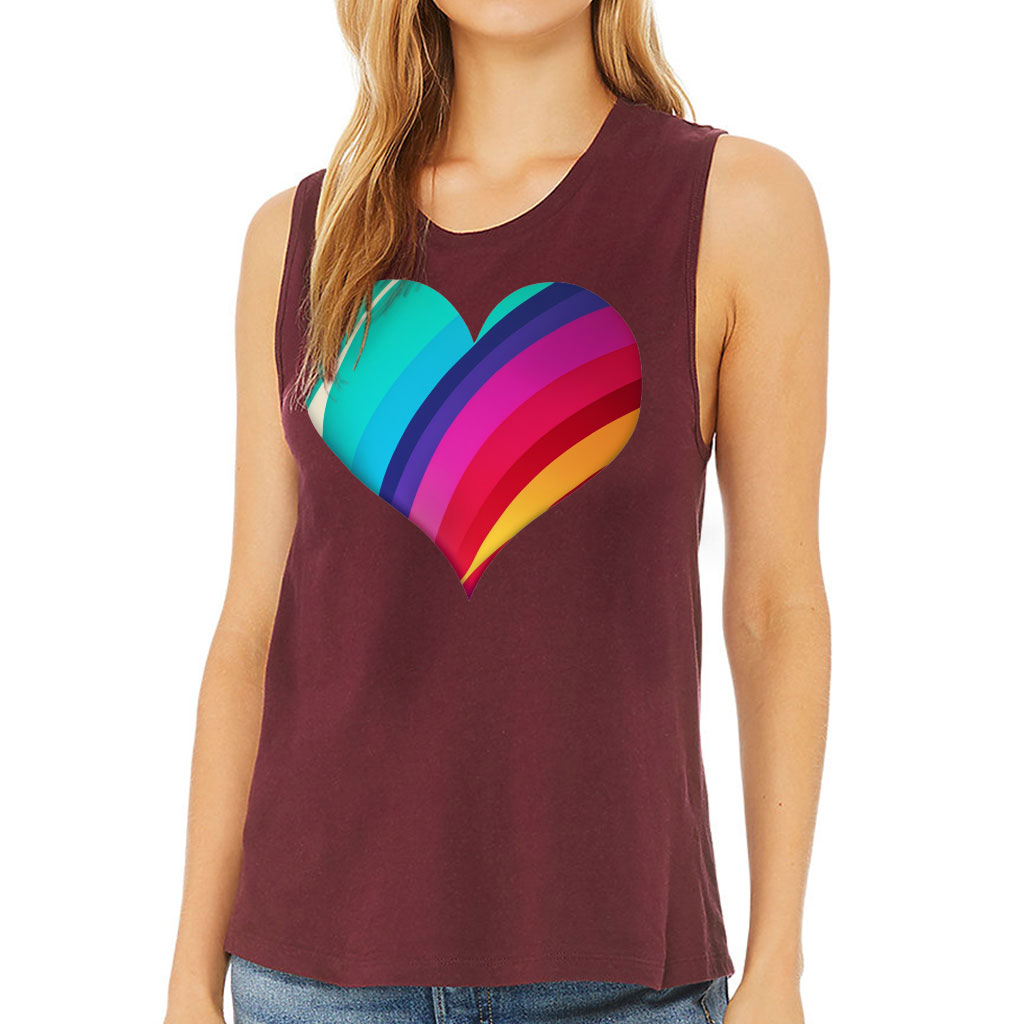 Rainbow Heart Women’s Muscle Tank – Colorful Tank Top – Cute Workout Tank