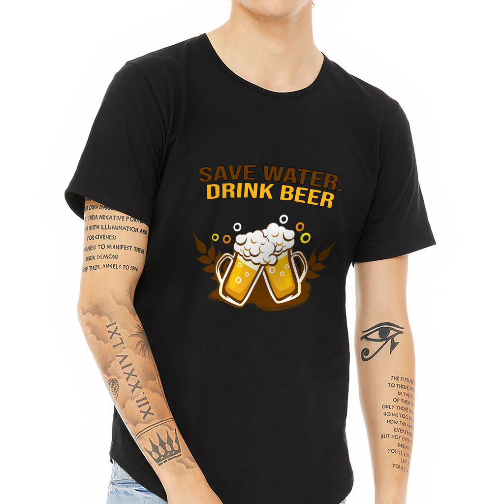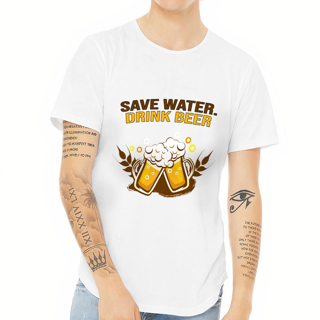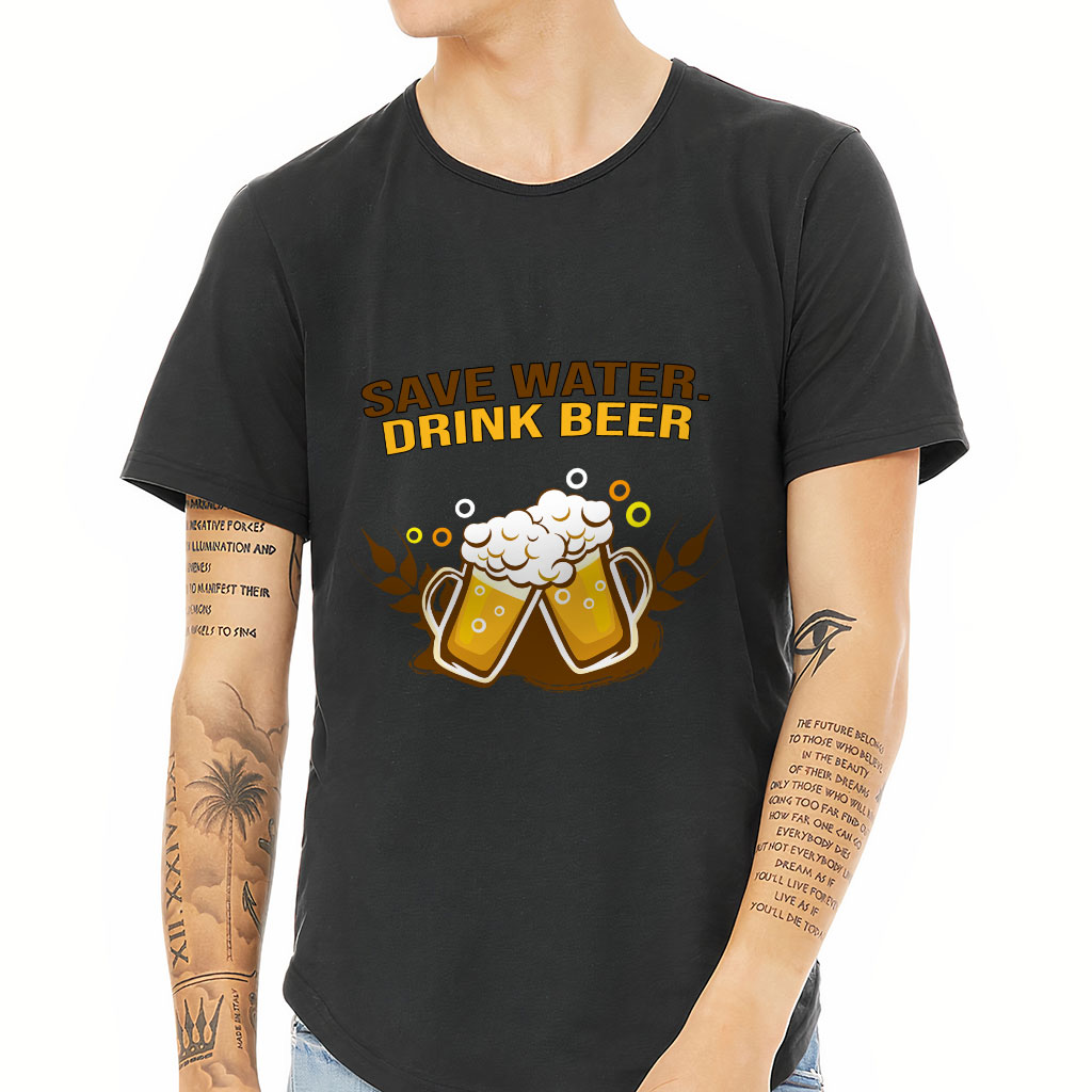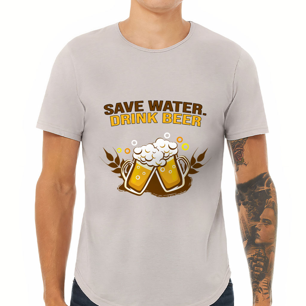 Save Water Drink Beer Curved Hem T-Shirt – Cool T-Shirt – Funny Curved Hem Tee