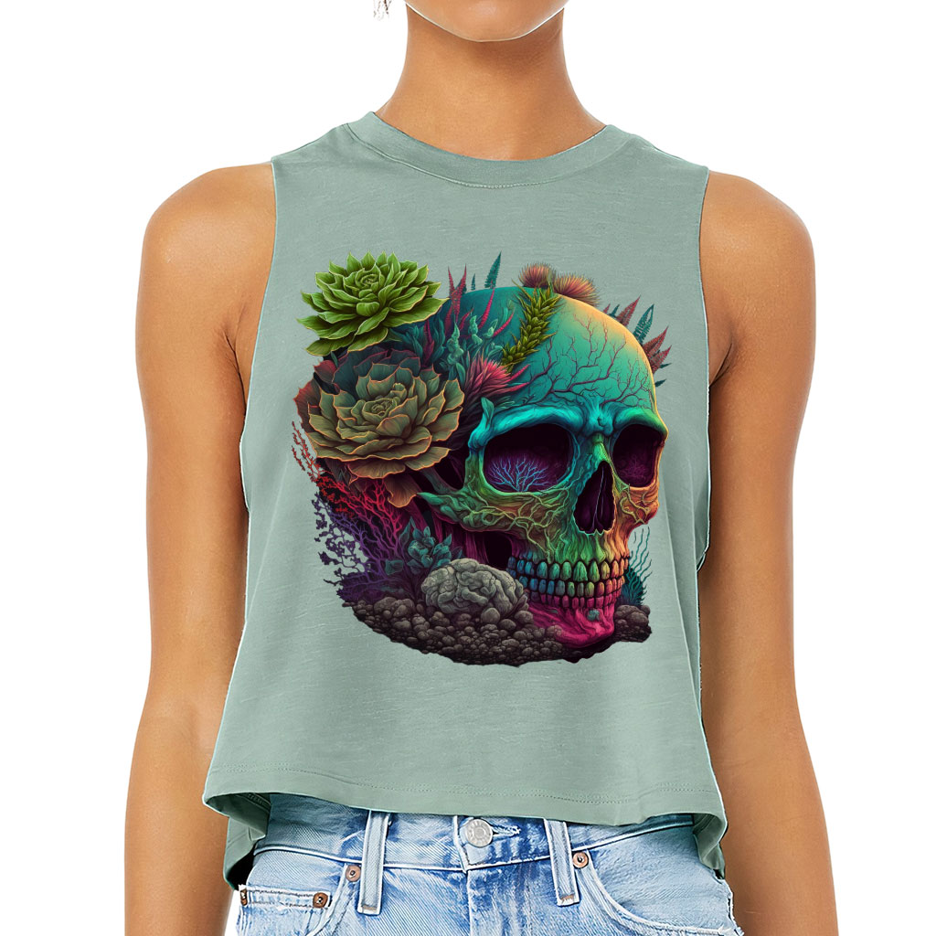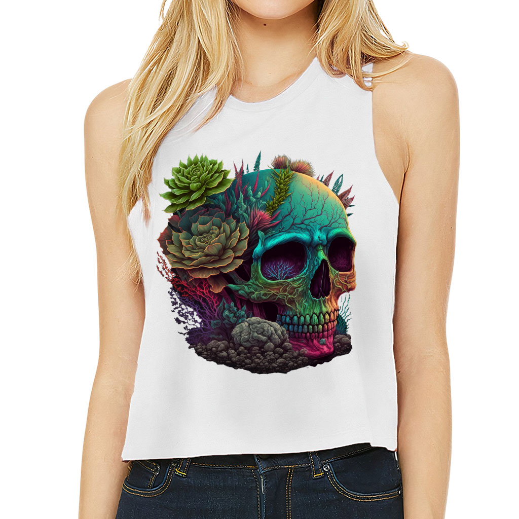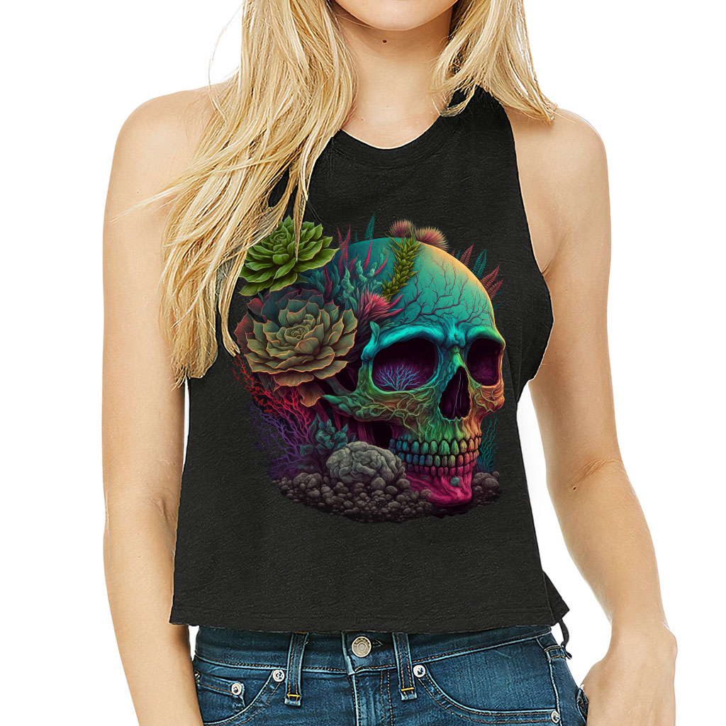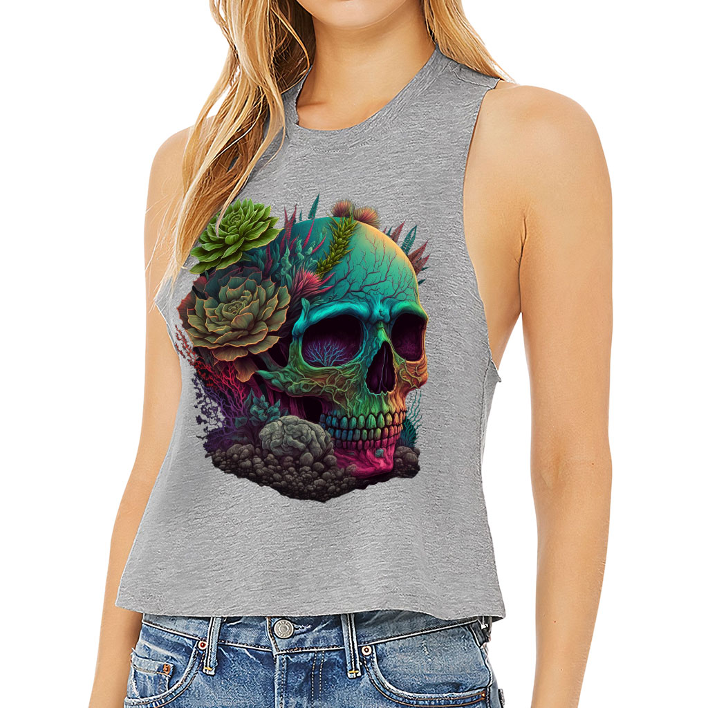 Skull Graphic Racerback Cropped Tank – Gothic Women’s Tank – Cool Art Tank Top