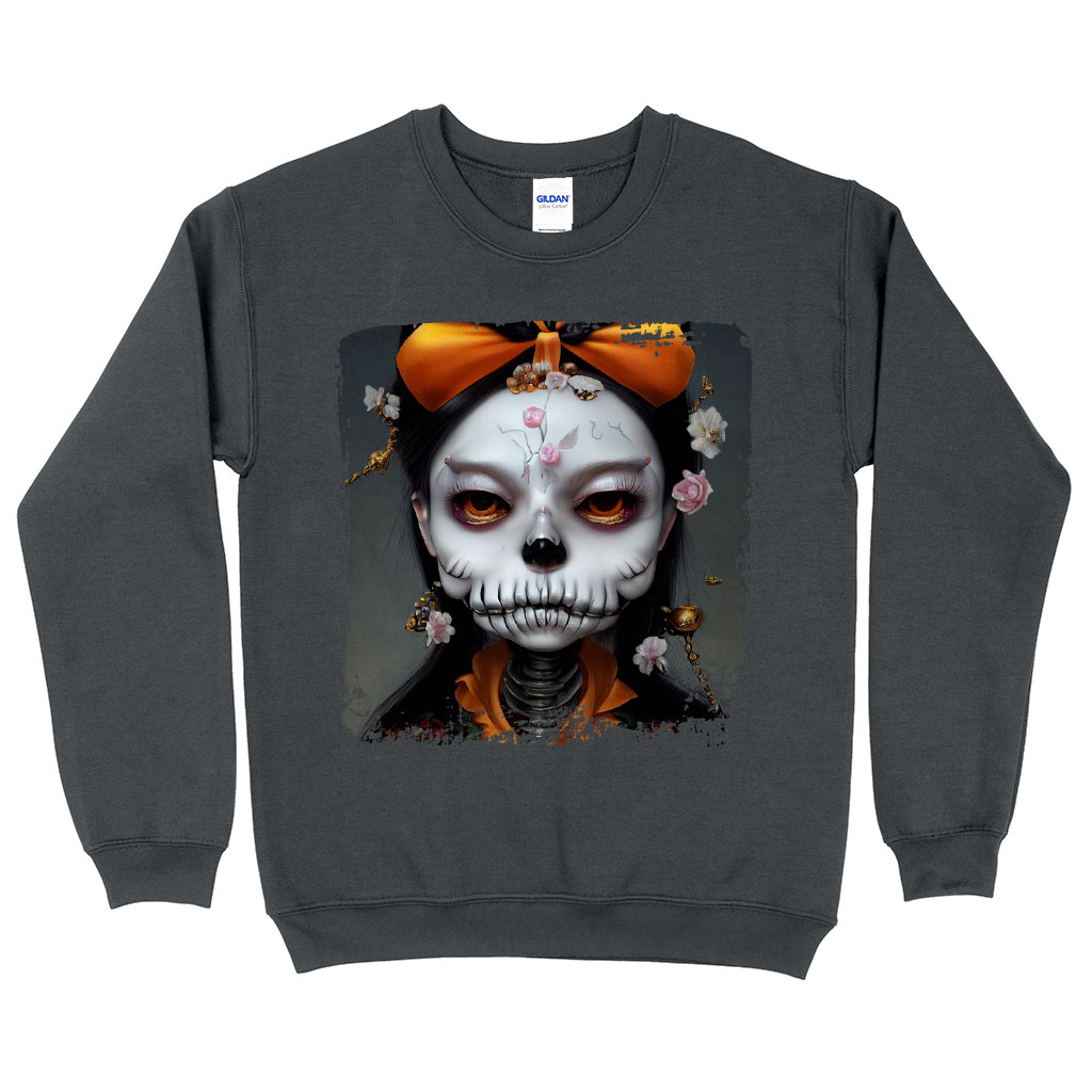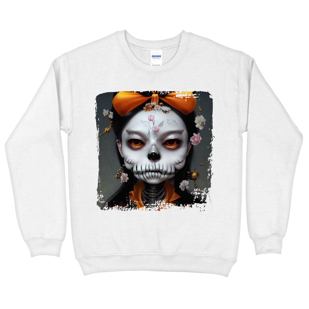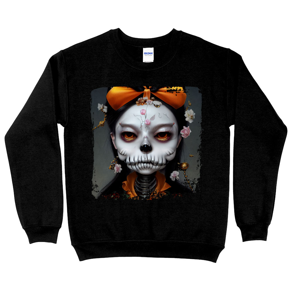 Skull Print Sweatshirt – Novelty Skeleton Crewneck Sweatshirt – Creepy Girl Sweatshirt