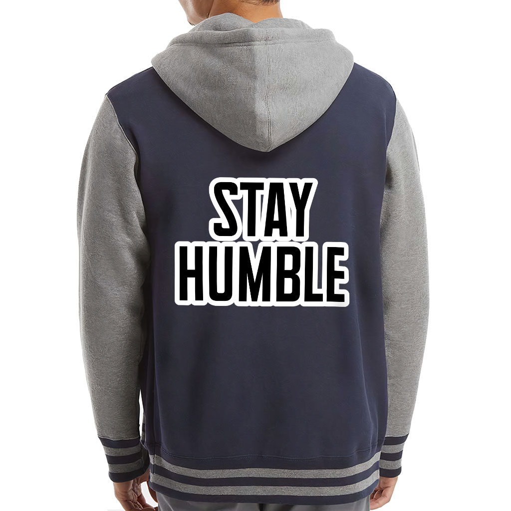 Stay Humble Varsity Hoodie – Cute Design Zip Hoodie – Quote Hooded Sweatshirt