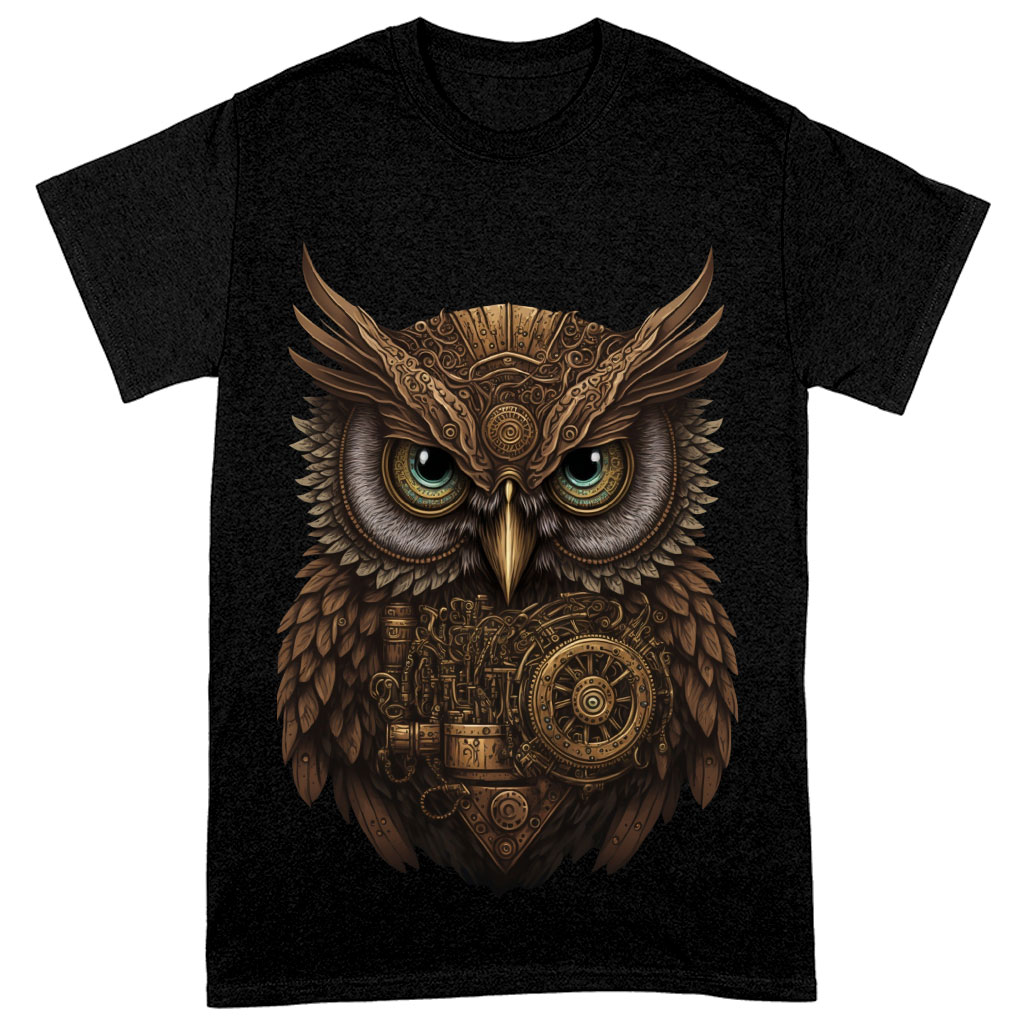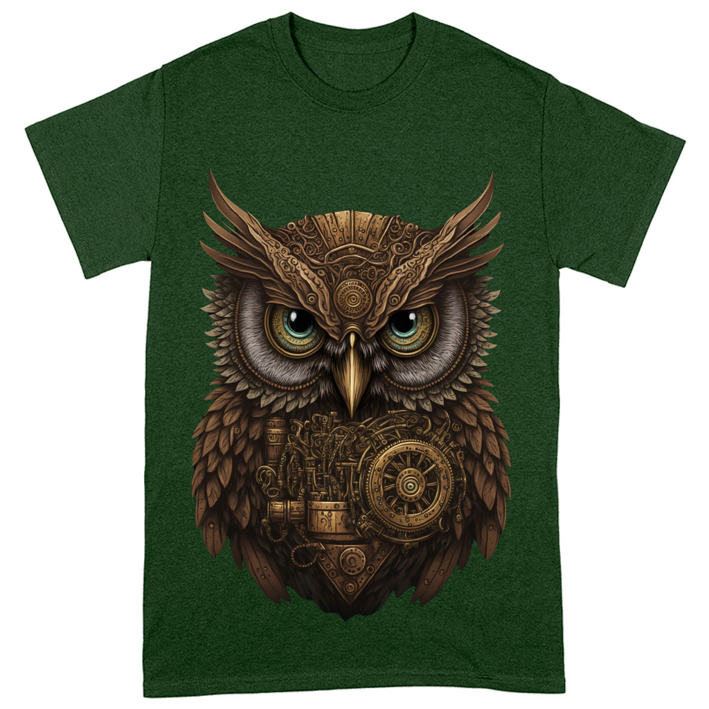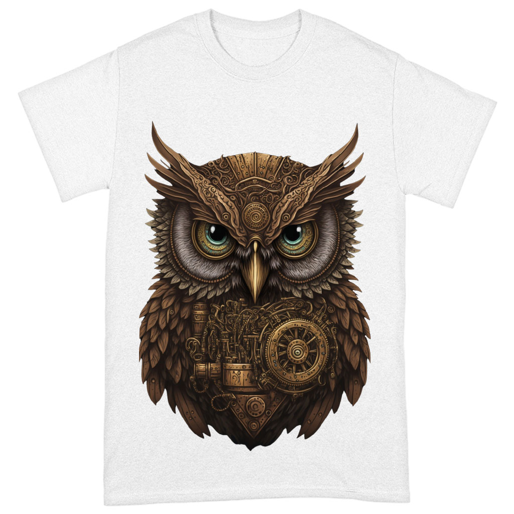Steampunk Owl Heavy Cotton T-Shirt – Best Print Tee Shirt – Cool Design T-Shirt