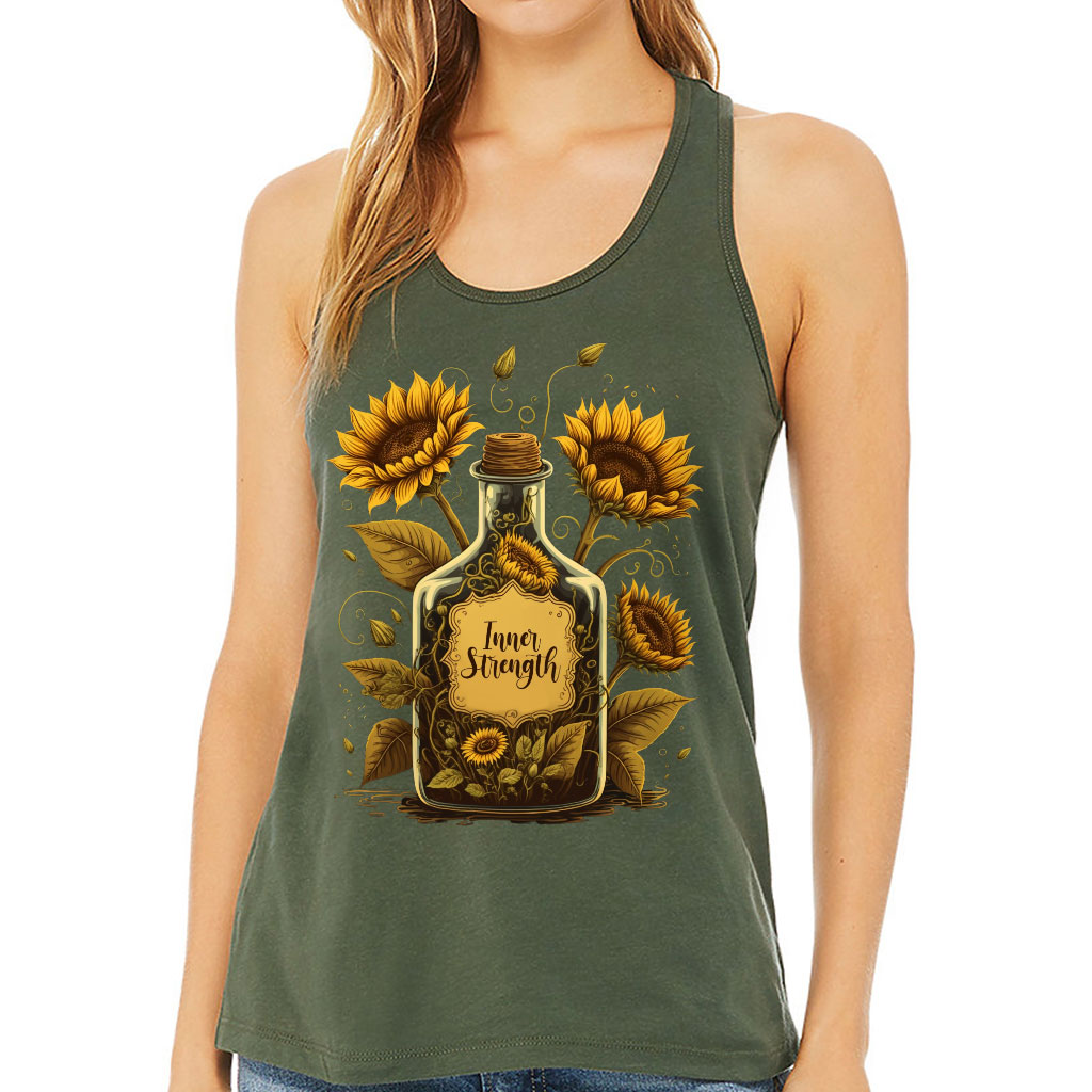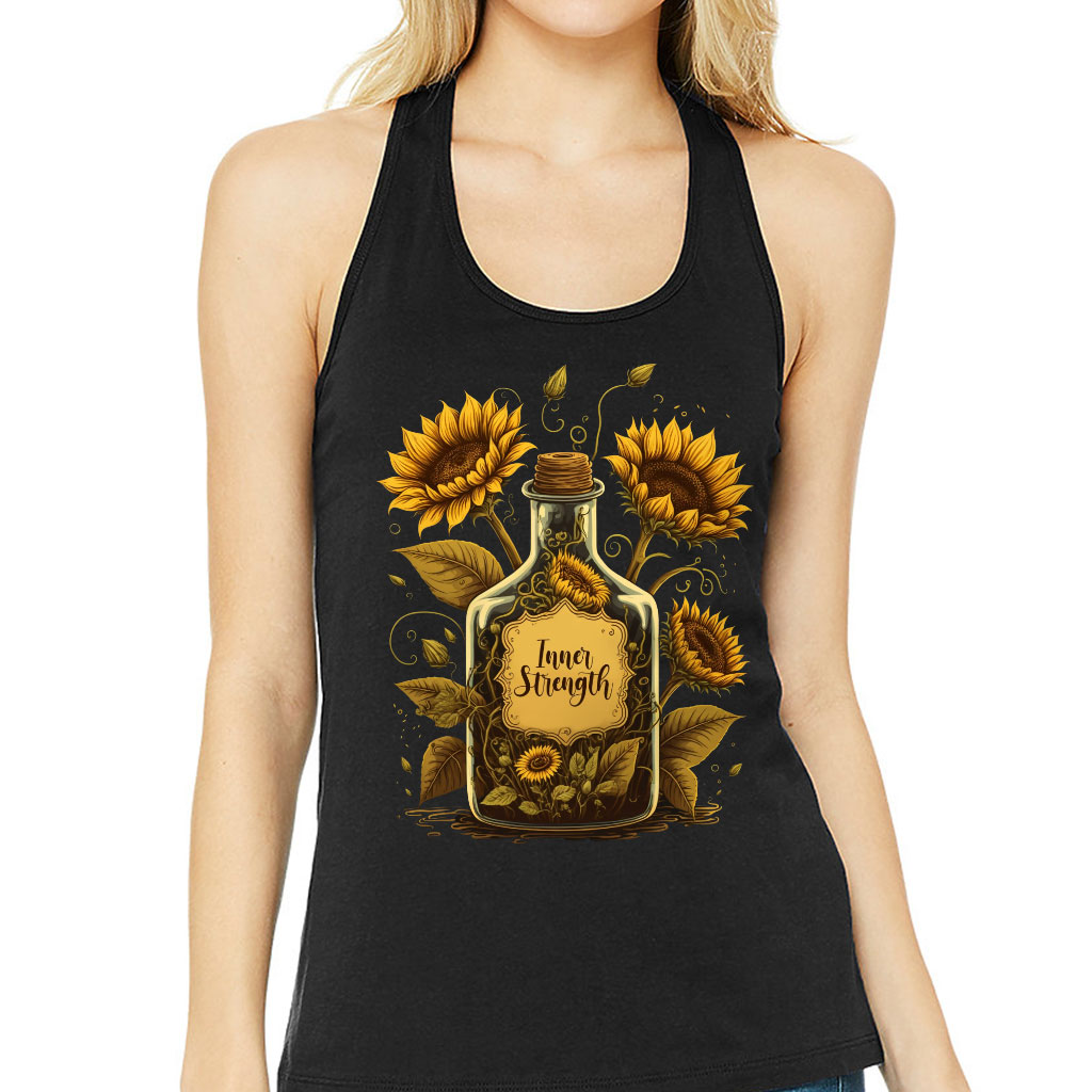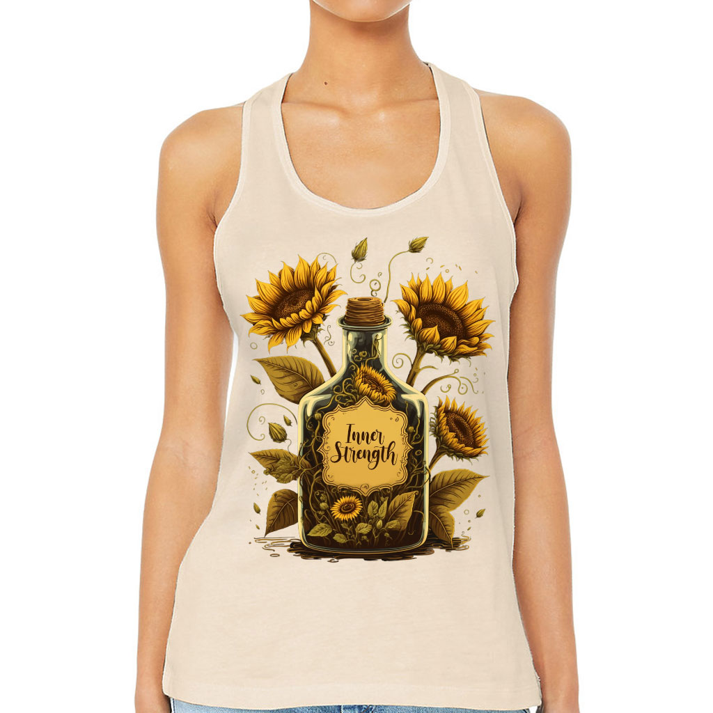 Sunflower Women’s Racerback Tank – Inner Strength Tank Top – Colorful Workout Tank
