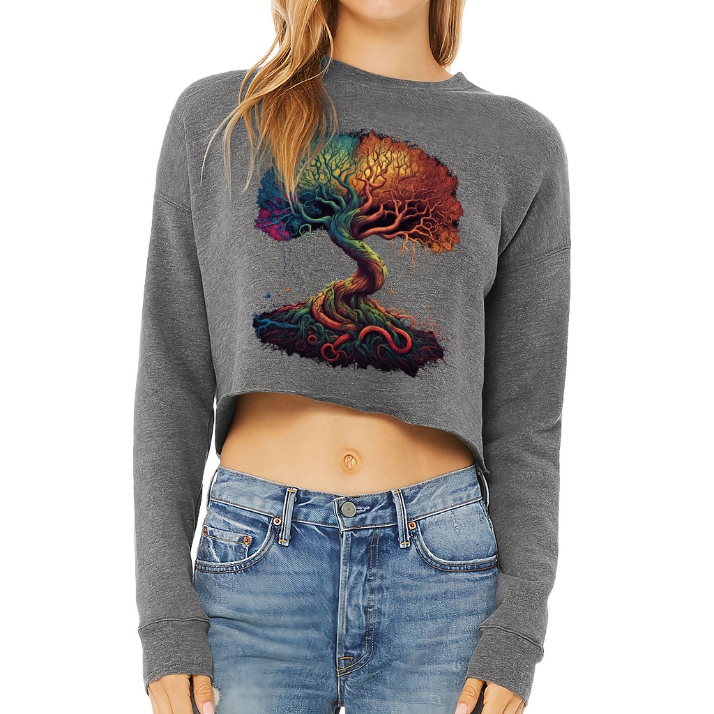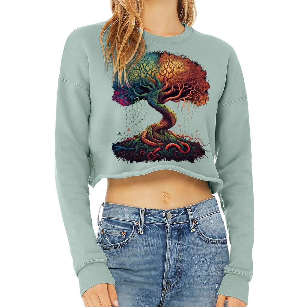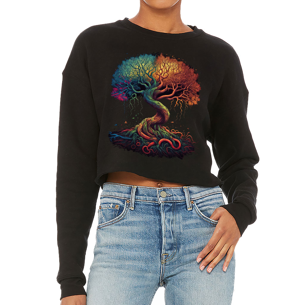 Tree Of Life Cropped Sweatshirt – Cool Graphic Women’s Sweatshirt – Illustration Crop Crew Sweatshirt