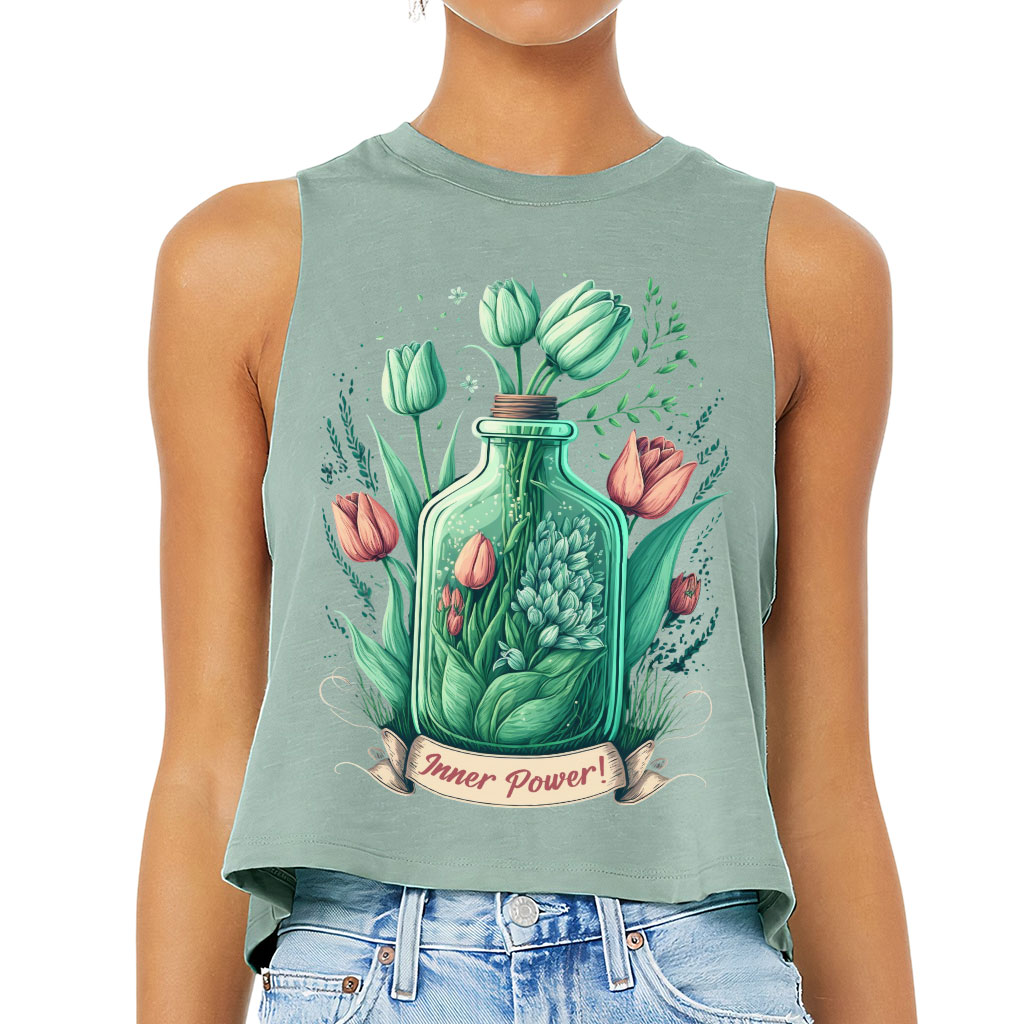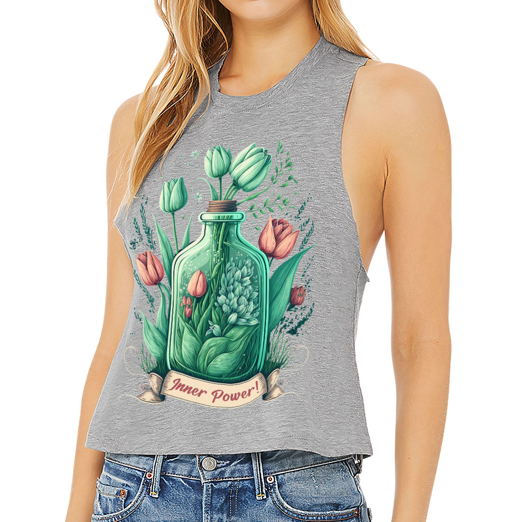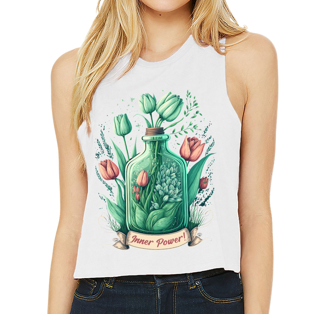 Tulip Print Racerback Cropped Tank – Inner Power Women’s Tank – Colorful Tank Top